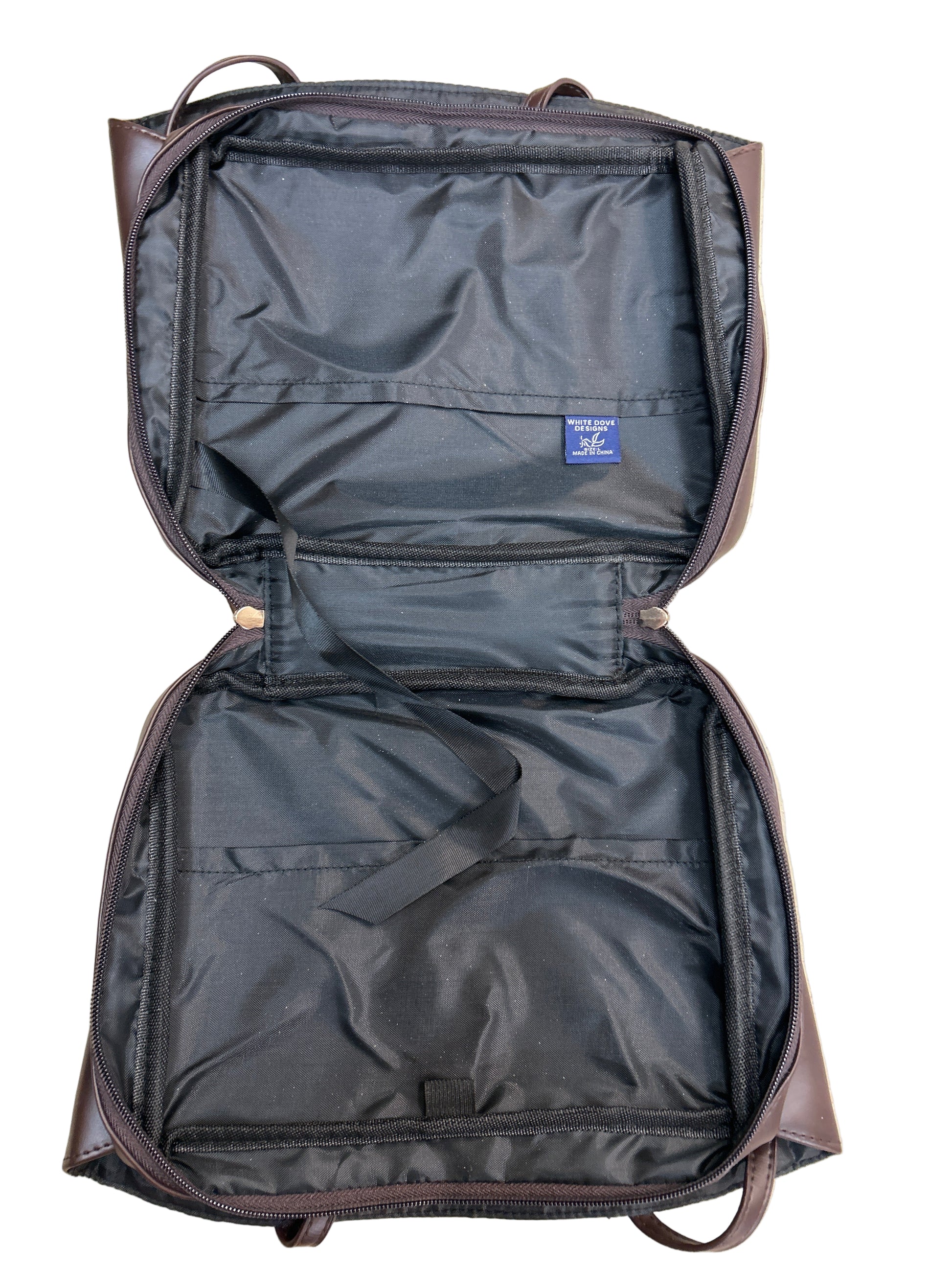 - Center pocket has zipper closure
